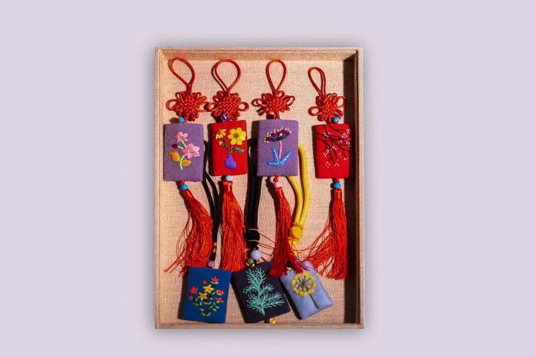 富含生活气息,融合民族和时尚元素。“红安绣活”在市级传承人刘珊等一大批具有民族情怀的年轻人带动下,顺应潮流,吐故纳新,用活“文创”概念,推出了一系列既精美又贴近生活的时尚刺绣产品,受到了年轻人的青睐,使得指尖上的非遗技艺在传承中得以保护,在创新中得以发展。