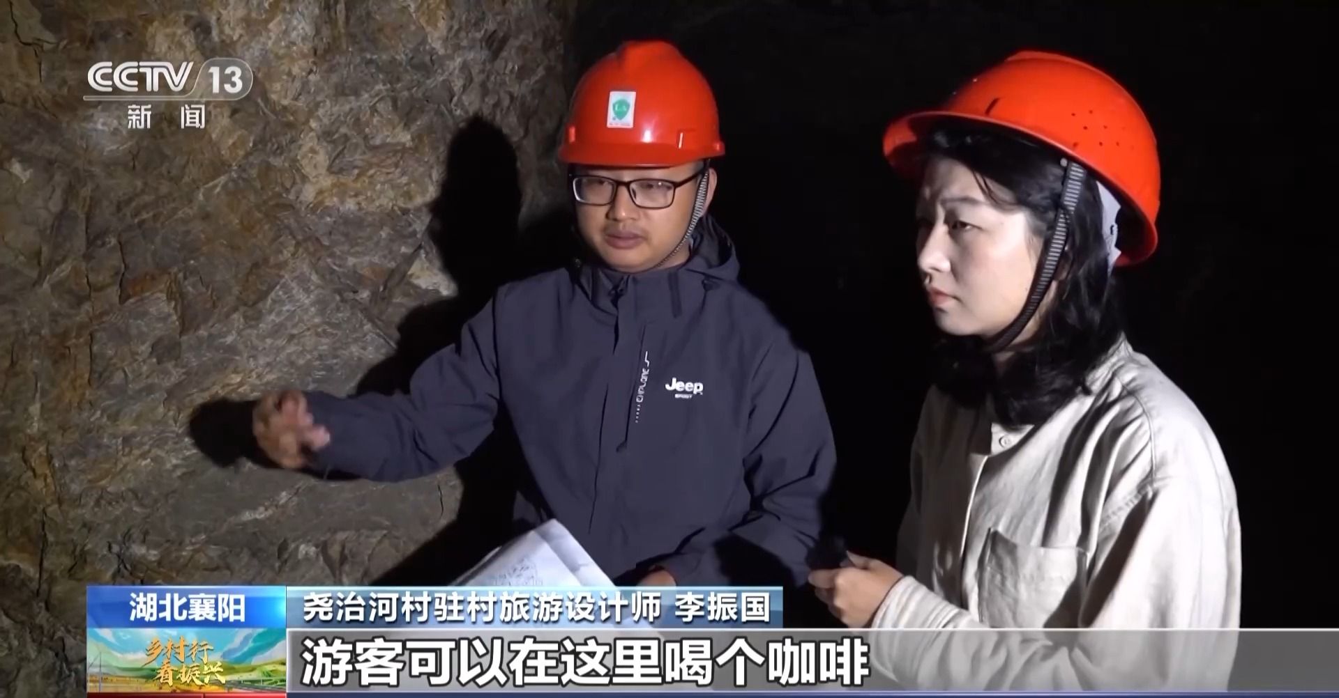 尧治河村驻村旅游设计师 李振国:洞穴的洞壁,都是进行了加固和结构性的处理。原来尧治河的村民只能做矿工,开矿车,现在他们的小孩到景区来当导游,自己开农家乐做老板。整个废弃矿洞就变成了尧治河乃至周边村镇的绿色资产。