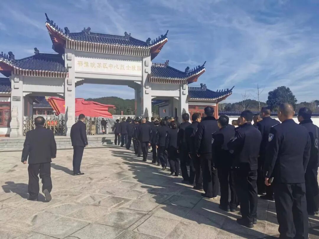 在鄂豫皖苏区中心烈士陵园,大家怀着无比崇敬的心情,认真倾听革命故事,缅怀革命先辈。全体人员在广场列队站立,向无名烈士纪念碑敬献花篮,武汉市人民警察培训学院党委委员、政治处主任郭湘军上前为花篮整理缎带,全体人员向烈士纪念碑行鞠躬礼,肃立默哀,一起瞻仰无名烈士纪念碑,缅怀烈士们的不朽功勋。在郭湘军同志的领誓下,面向党旗,举目伫立,高举右拳,以发自肺腑的情感,重温入党誓词,忆初心,话担当,进一步增强党性修养和爱国意识。随后,大家来到烈士碑前瞻仰红军烈士墓,表达对革命先烈们的深切哀思和崇高敬意。