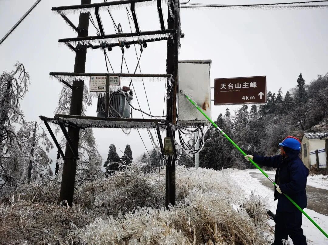 为确保该地区用户安全可靠用电,当日清晨6时,在了解天台山风景区的地形条件后,公司迅速组织专业部室及一线供电人员第一时间顶着寒风、迎着雨雪,前往故障点进行抢修。