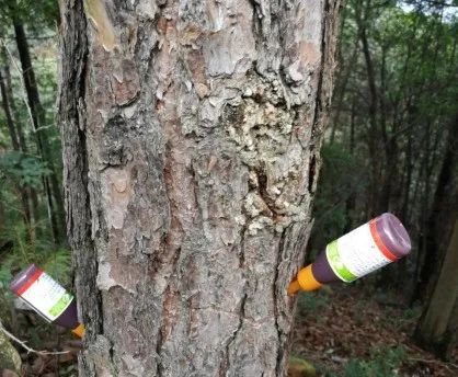 林业部门对松树采取打孔注药方式预防松材线虫病