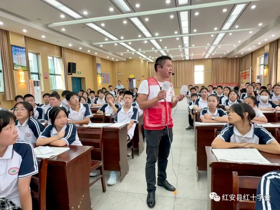 红安网消息 2023年9月9日是第24个“世界急救日”,主题为“数字赋能·救在身边”。为践行红十字会“保护人的生命和健康”宗旨,进一步在全社会倡导健康、科学、文明和“人民至上、生命至上”理念,弘扬“人人学急救,急救为人人”的新时代文明新风尚,9月8日上午,红安县红十字会走进县实验中学,开展校园守护·“救”在身边——2023年“世界急救日”暨红十字生命教育应急救护知识普及活动。