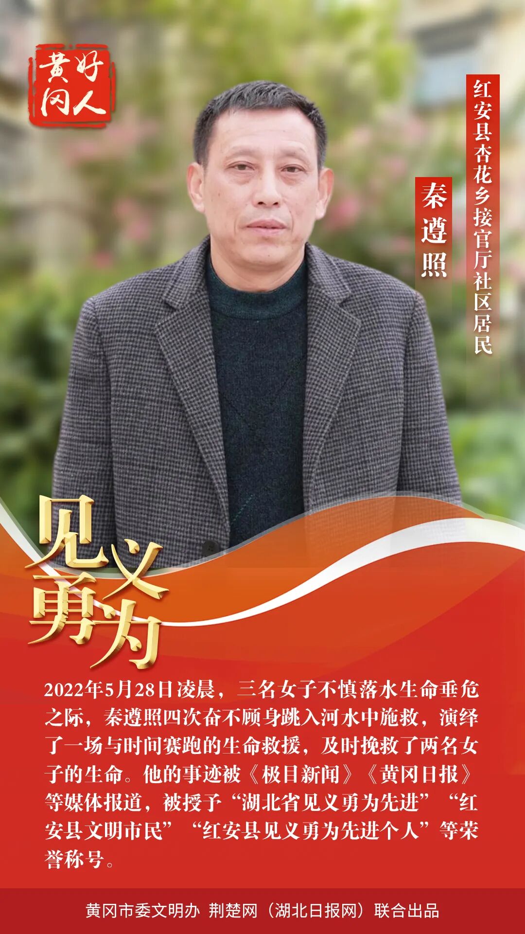 本期“黄冈好人”共有5组好人入选。他们中有“见义勇为,勇救落水者”的秦遵照;有“扎根基层七十余载老医”的张自强;有“孝老爱亲,待叔如父,被誉为大山里‘好儿媳’”的丁卫香;有“助人为乐,从事志愿服务30余年的”的汪天明;有“助人为乐,创建了‘向阳花’留守儿童之家品牌”的张静。