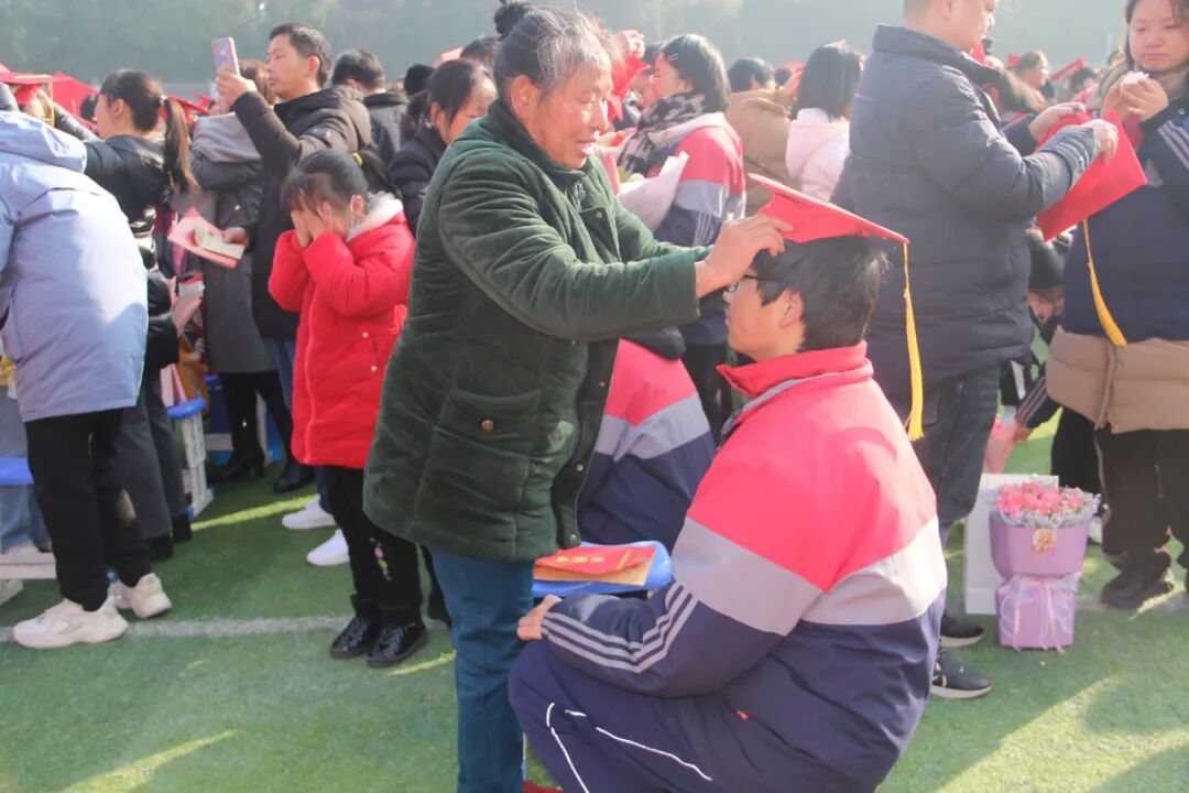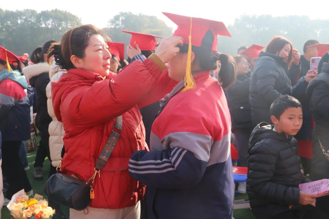 《礼记·冠义》:“冠者,礼之始也。”冠而字之,成人之道也。冠礼,标志着男女由少年迈入成年。家长为学子加冠,全体学生明志,从此要胸怀鸿鹄之志,回报父母深情。