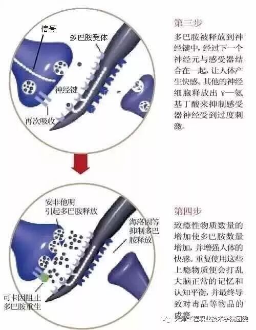 长期使用毒品会使大脑机能发生改变、破坏机体平衡。最主要的改变就是细胞上的多巴胺受体的数量减少。久而久之,兴奋的阈值就会逐渐提高,刺激吸毒者吸入更多毒品。