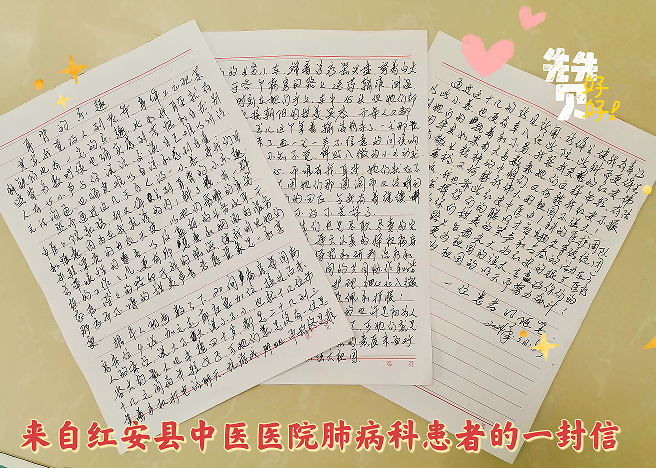 红安网消息 “在我就诊的内一科3楼,有一群年轻漂亮的白衣天使,以她们婀娜的身姿、略带磁性的嗓音,以及熟练的业务水平、干练的工作作风,更有那慈善和娴熟的服务态度,深深地烙印于我的脑海······ ”近日,红安县中医医院肺病科收到一封患者书信。