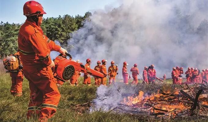 5、扑火人员需配备必要的装备,如头盔、防火服、防火手套、防火靴和扑火工具。