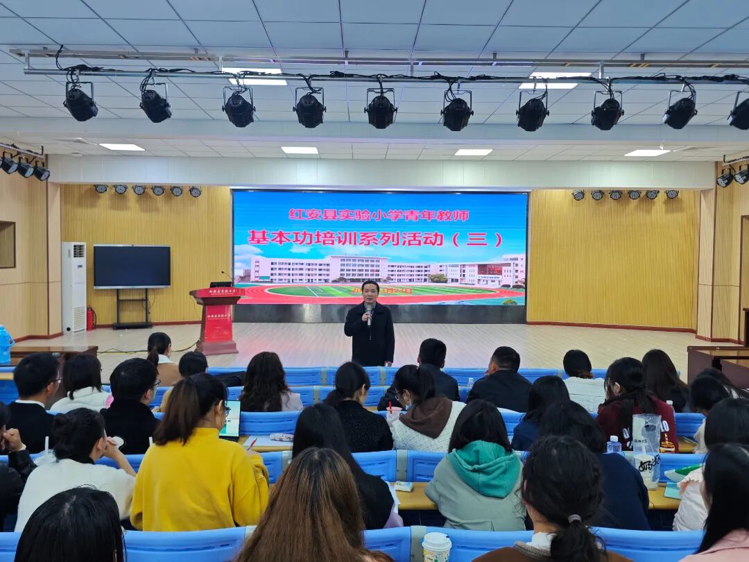 红安网消息 为提升青年教师的教学水平,强化教育教学基本功,进一步促进学校教育教学质量的提升,3月23日,红安县实验小学开展了青年教师基本功提升培训,四校区分管教学副校长、教务处全体成员及所有青年教师参加培训。
