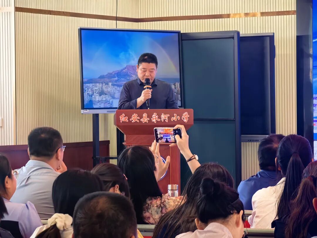 红安网消息 5月8日上午,红安二小永河校区携手黄冈市东坡小学开展“跨区域交流•同课异构”教研活动,活动在二小永河校区报告厅举行。黄冈市教育局和红安县教育局相关负责人到现场观摩。