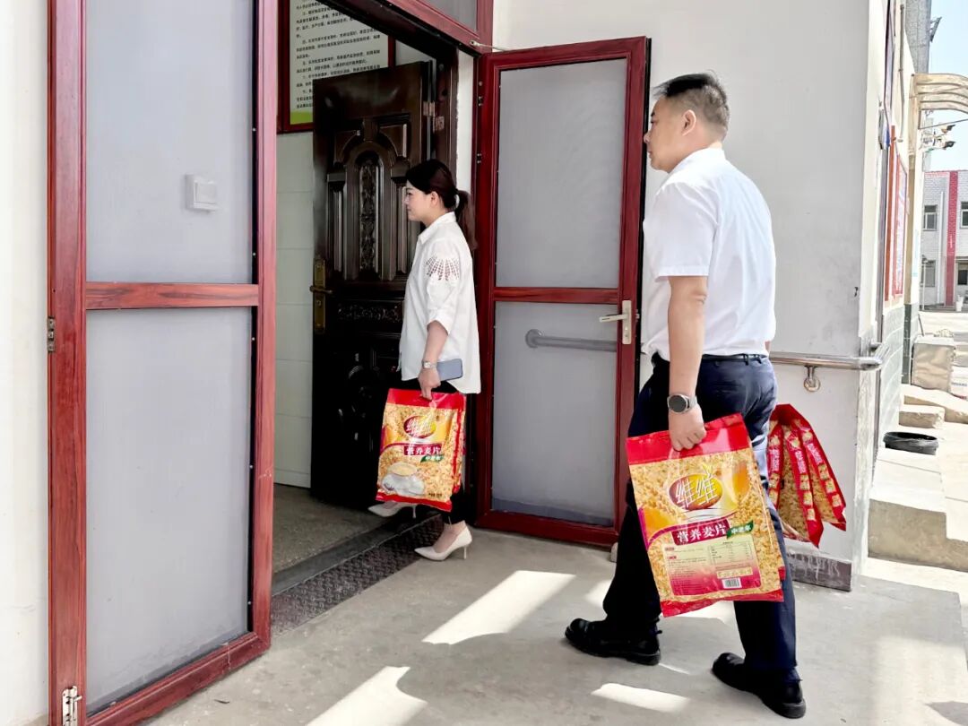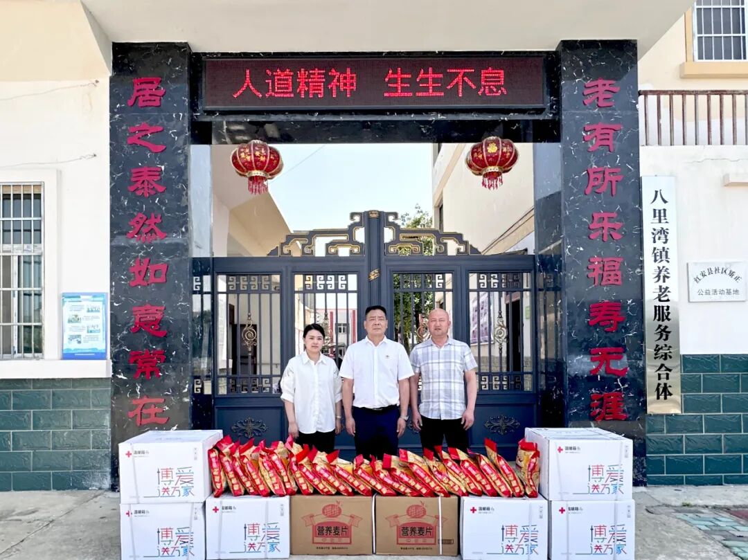 在八里湾镇农村福利院,与老人们拉家常,详细询问了老人们近期的生活及身体健康状况,叮嘱老人们要保重身体,并送上了“博爱送万家”温暖箱、中老年营养麦片等慰问物资。