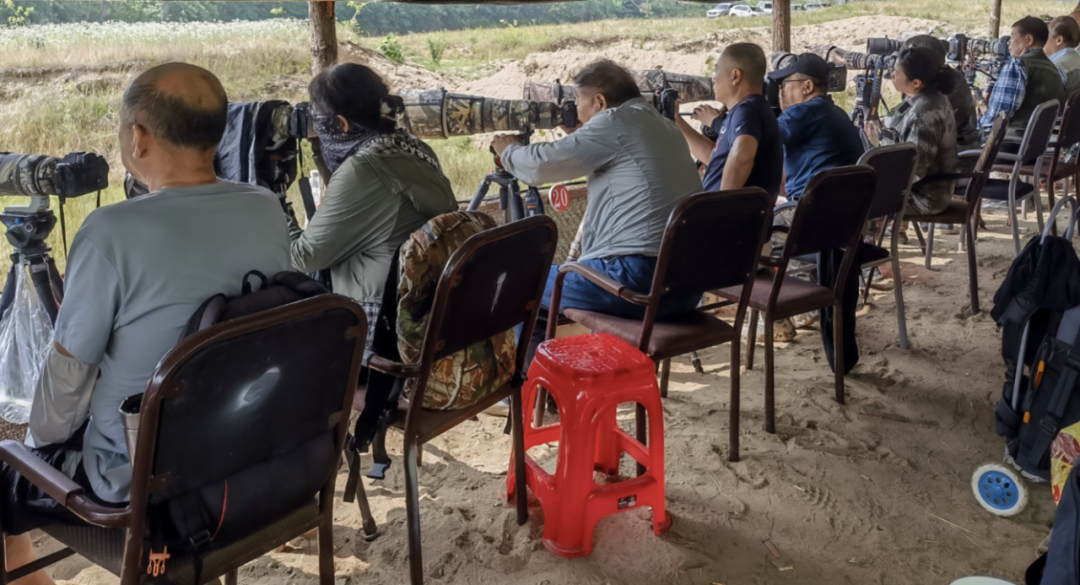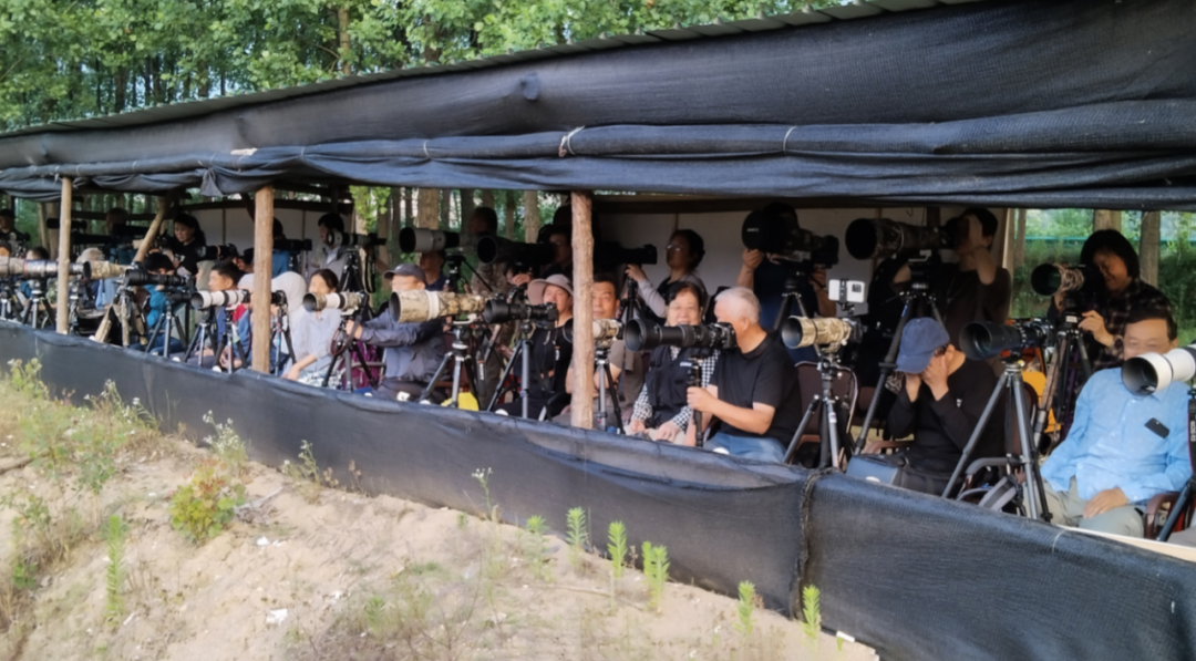 这些小鸟的回归,吸引了全国各地的摄影爱好者,每天来这里观鸟、拍鸟的达上百人。为了给每一个摄影爱好者提供一个防晒、防雨的拍摄环境,他们在这里支起了6个摄影大棚,可容纳120人同时拍摄。但这几天依然出现了爆棚的情况,要想“进棚”拍摄,必须提前预约,有人等了两天才得到一个理想的拍摄机位。