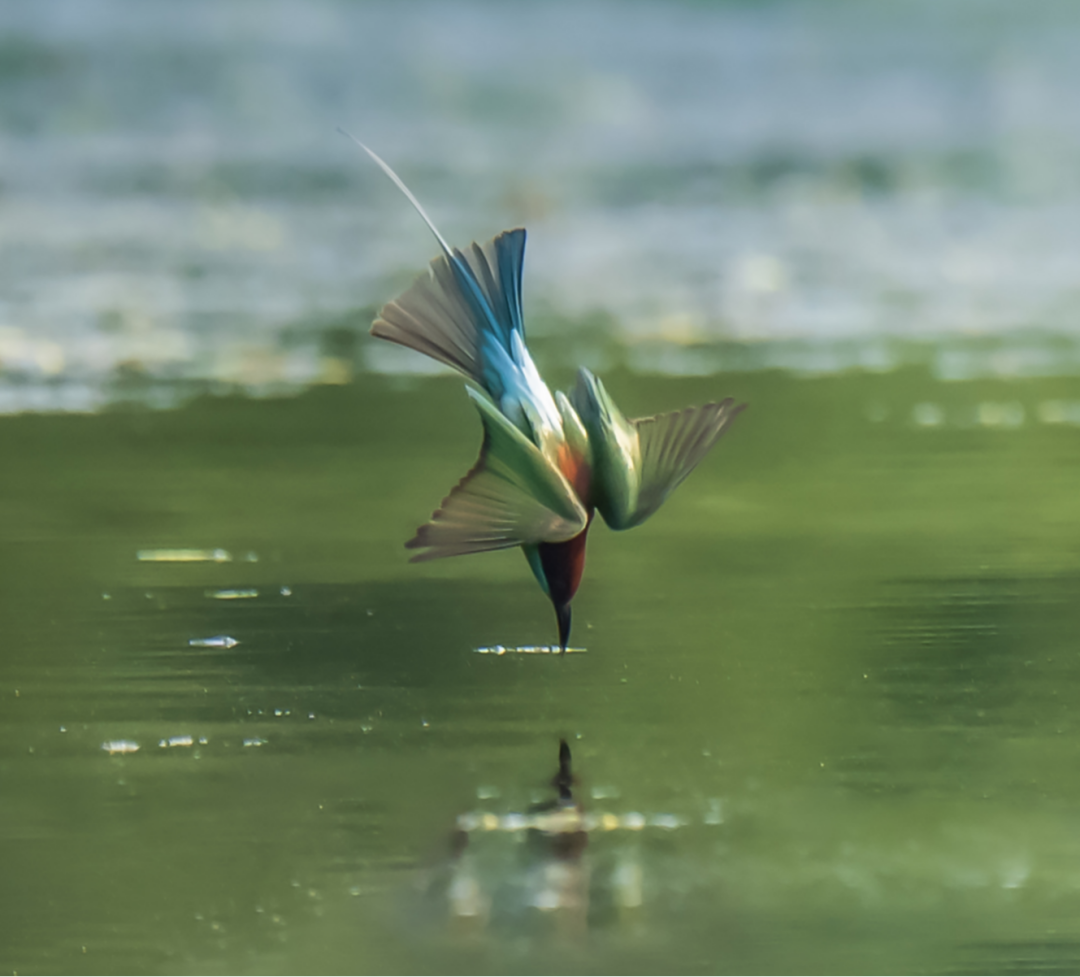 红安网消息 初夏时分,在红安县七里坪镇杨山河滩,一群蓝喉蜂虎在草丛间自由地觅食嬉戏、追逐打闹……闻讯从全国各地赶来摄影爱好者们,个个手持“长枪短炮”在不停地摁下快门,捕捉这精彩动人的瞬间。