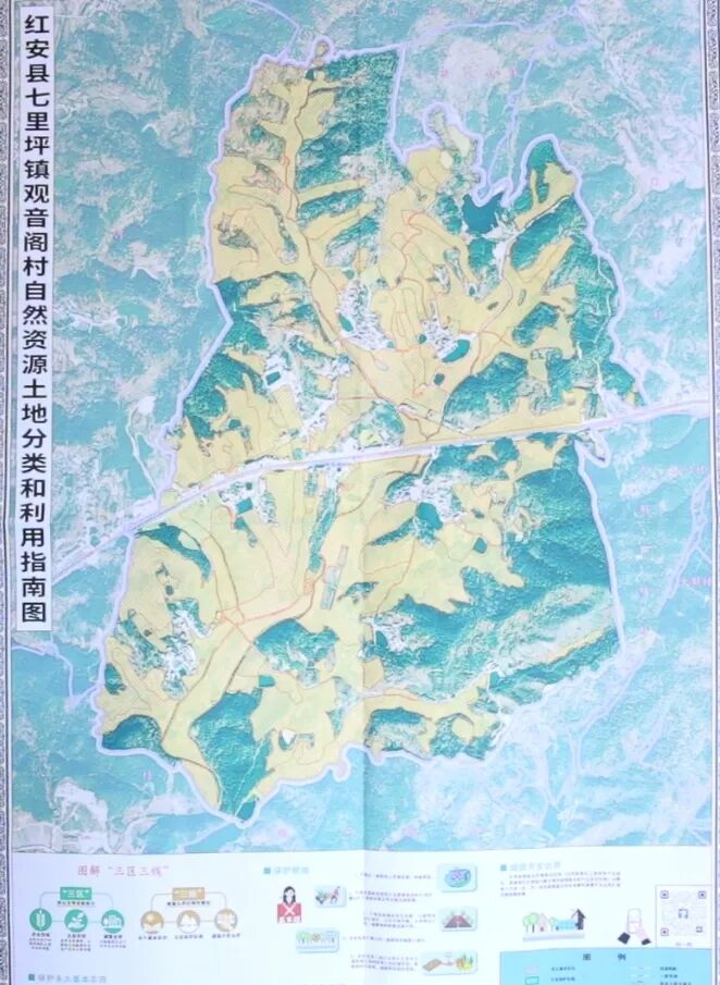 红安网消息 6月15日,红安县自然资源和规划局耕地保护监督股和七里坪镇国土所负责人,将七里坪镇观音阁村自然资源土地分类和利用指南图送到村“两委”和村民们手中,一村一图,公示上墙。