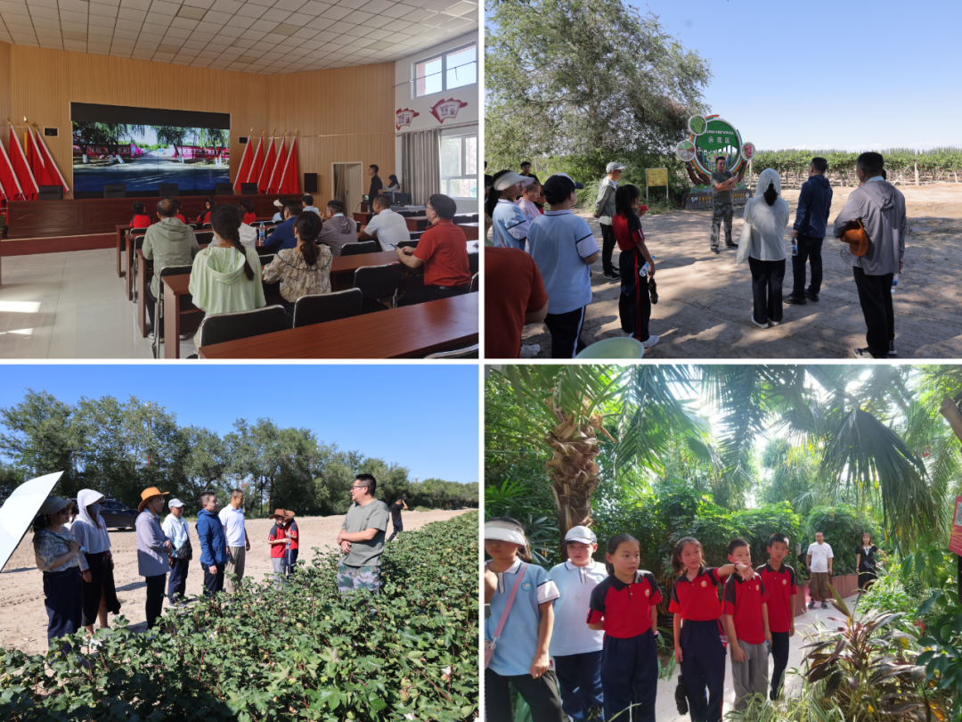 随后,交流活动延伸至双河市实验学校的校外教育实践基地——农作物种植基地和热带植物园。大家参观了八十九团十四连党群活动中心,在基地了解本地农作物的种植、生产和热带植物的特点、功用,感受农业生产的辛勤与智慧,领略自然界的奇妙与生命的奥秘。