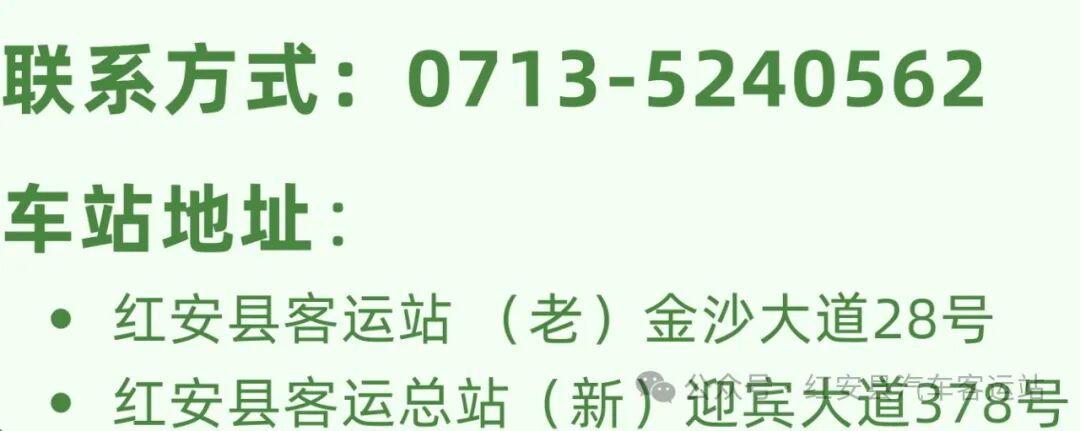 9:00从红安县老客运站发车至9:30桃花至永河至付桥至巨龙收费站至汉口北;14:00从汉口北返回红安。