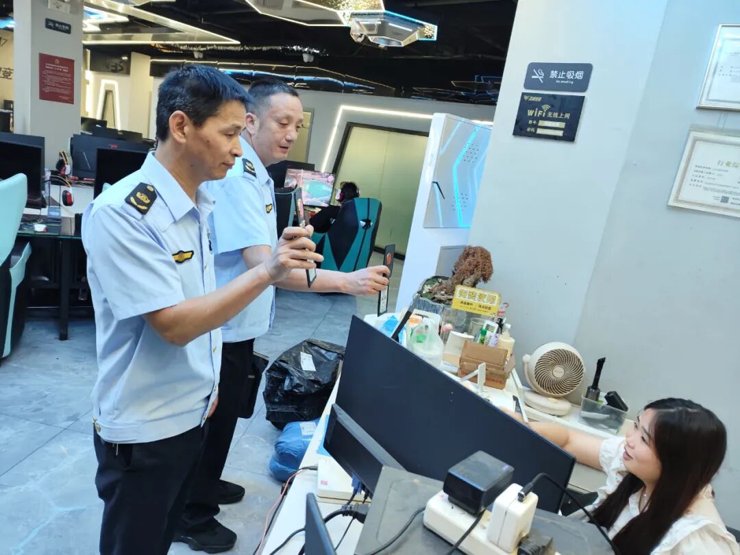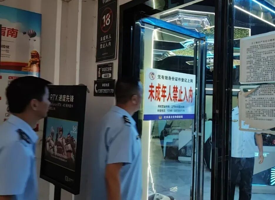 8月18日起,执法人员对各网吧、ktv开展了细致的巡查工作。重点检查了接纳未成年人情况,并要求业主在吧台、电脑显示屏、走廊等地设置“本网吧禁止未成年人上网”“未成年人禁止入内”的醒目标识,进一步筑牢了未成年人保护的防线。