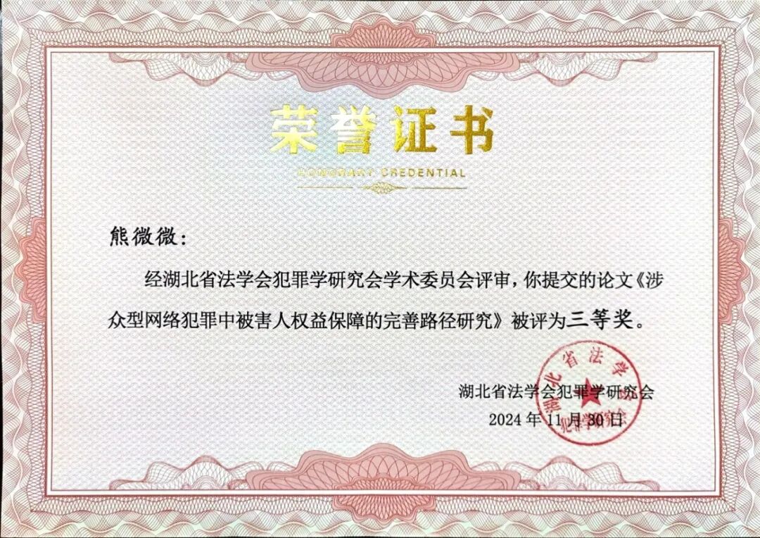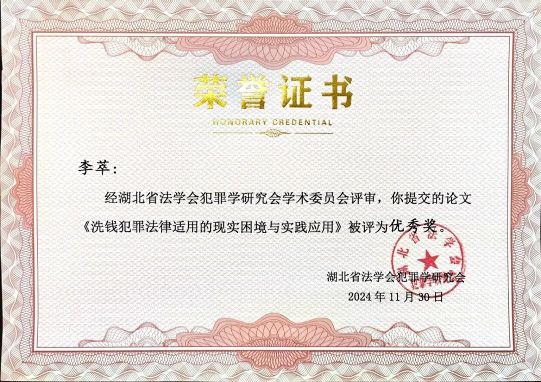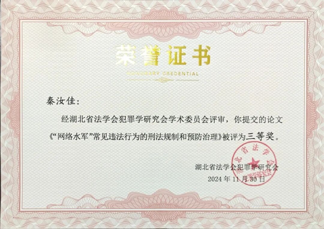 红安网消息 11月30日,湖北省法学会犯罪学研究会2024年年会暨新时代犯罪预防疑难问题研讨会在十堰市检察院召开。来自全国的知名专家教授,省内政法机关、高校、律师事务所等200余名司法实务者和理论研究者参会。经专家认真评选,红安县人民检察院在本次犯罪学研究会共有4篇论文获奖。二等奖1篇,三等奖2篇,优秀奖1篇。