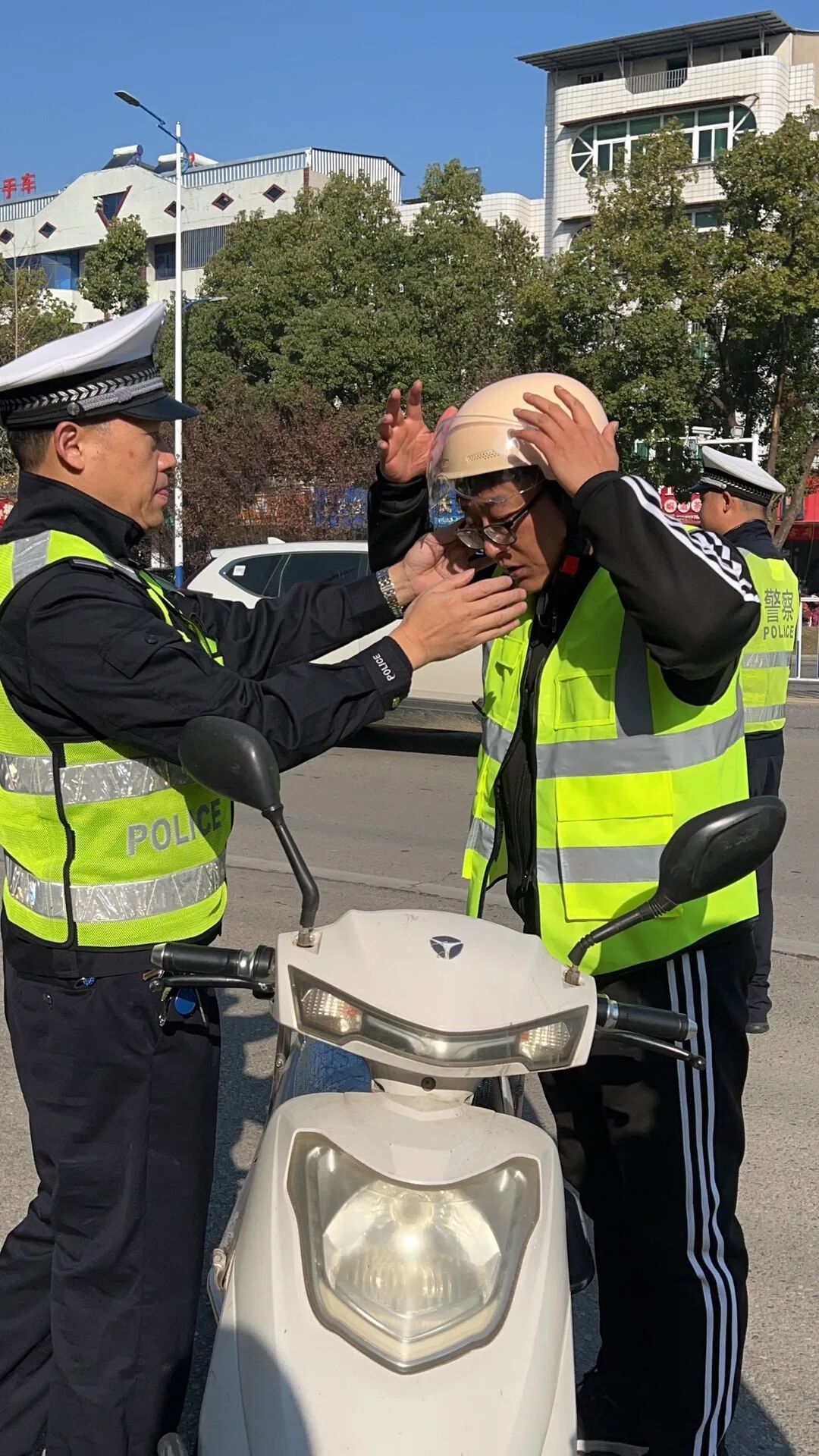 “你好,你刚刚过马路时闯红灯了,请跟我们一起现场学习一下交通安全知识。”十字路口的4个方向分别有两名交警疏导交通,为群众安全保驾护航的同时对骑乘摩托车和电动车过程中未佩戴头盔、闯红灯、逆行等交通违法行为进行纠正、教育和劝导。民警还将《致全县广大摩托车、电动车驾驶人的交通安全倡议书》《致全县老年朋友一封信》等宣传资料逐一派发,向违规行驶人员宣讲遵守交通安全法规的重要性,提醒大家要时刻绷紧安全弦。