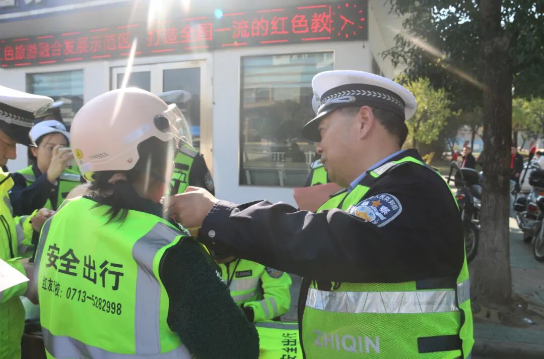 民警通过展出交通安全宣传展板、悬挂主题横幅、粘贴122LOGO标贴、发放交通安全宣传单、赠送安全头盔及现场宣讲等形式,面对面向群众普及交通安全相关法律法规、出行注意事项,阐明骑乘摩托车和电动车不佩戴安全头盔、驾乘车辆不系安全带、酒驾、醉驾等交通违法行为带来的危害性,耐心为群众解答群众关心的交通安全问题,教育引导群众树立文明交通意识和规则意识。