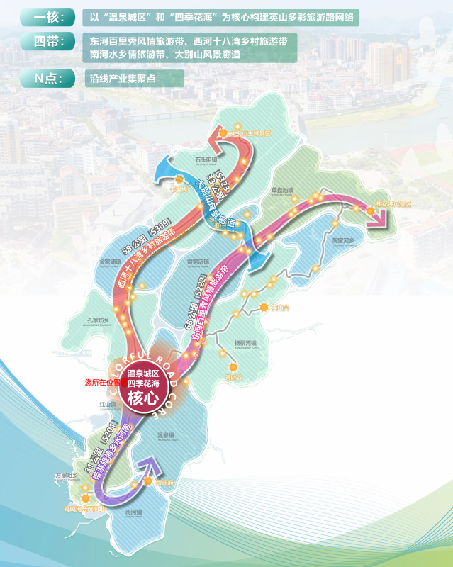 罗田县则围绕五条旅游画廊,以170多公里的多彩旅游路串起全域好风光。通过以县城为中心,以大别山红色旅游公路风光带和五条旅游画廊为轴线,以县乡道为串联,结合区域内道路交通和沿线相关资源,统筹布局县城、乡镇、景区三级旅游功能节点和交通线路,以沪武、麻阳高速的五个通道为接口,就近融入全市和县际通道,串联形成全县多彩旅游路“一张网”。