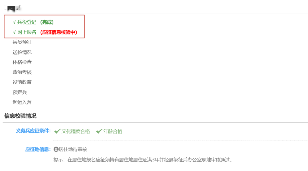 “应征信息校验中”,即学籍状态或居住地等信息需要进行审核,请耐心等待。
