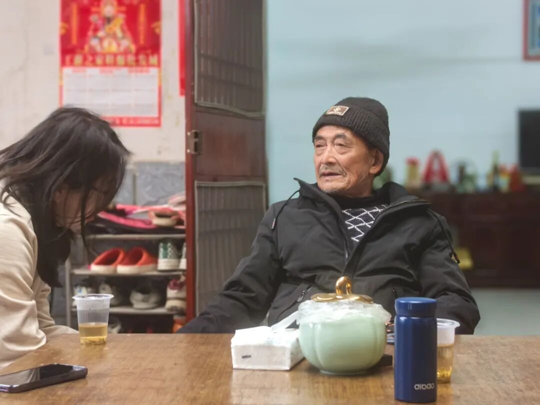 方汉炳(右)讲述关于父亲的往事。