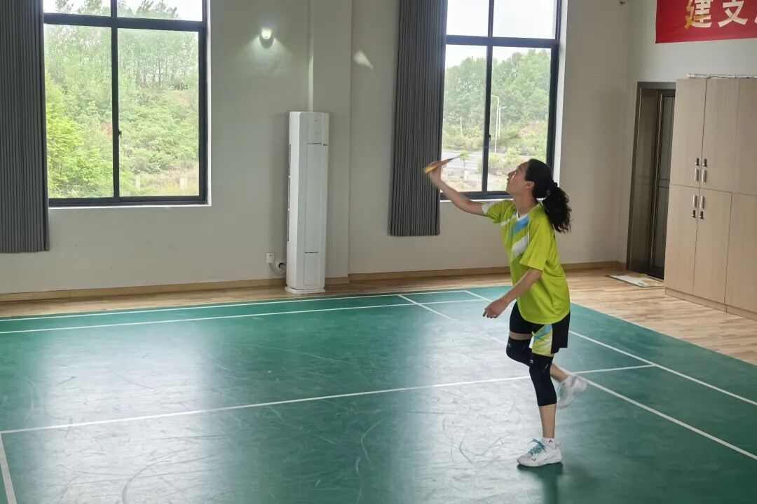 在羽毛球女子单打比赛中,县法院干警凭借精湛的球技、顽强的毅力和良好的战术素养,一路过关斩将,最终摘得女单桂冠。赛场上,她步法灵活,眼神坚定,每一次精准的扣杀、巧妙的吊球都展现出扎实的功底,为观众呈现了一场场精彩绝伦的比赛,赢得了阵阵喝彩。