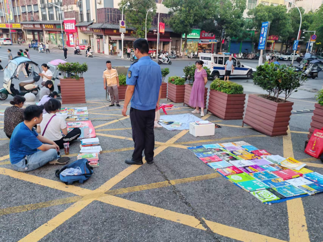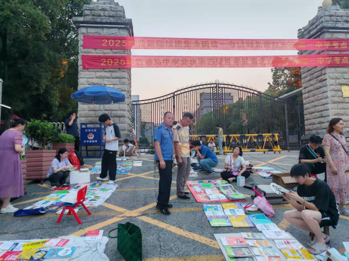 为营造一个良好环境和市容氛围,环卫工人早早上岗,在红安一中等学校周边开展清扫保洁工作,全程保障“旧书市集”环境卫生整洁;执法队员提前到达点位,协助毕业生有序摆放摊位,耐心提醒大家合理经营并保持摊位周边卫生。