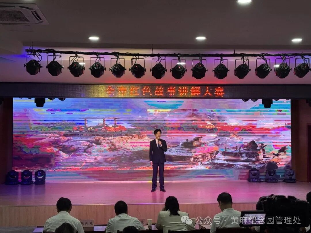 决赛现场,来自全市的21名专业组讲解员同台竞技,以声传情、以情动人,将黄冈的红色历史娓娓道来。黄麻起义和鄂豫皖苏区纪念园的陶长贵以《“冰雕连”的悲壮与荣耀》为题,通过细腻的情感铺陈与沉浸式讲述,重现了革命先辈们以血肉之躯捍卫信仰的震撼场景。他生动的语言和真挚的情感,仿佛让观众置身于那段烽火岁月,现场掌声雷动。评委在点评时称赞:“陶长贵的讲解既有历史的厚重感,又充满人文温度,让红色故事真正‘活’了起来。”