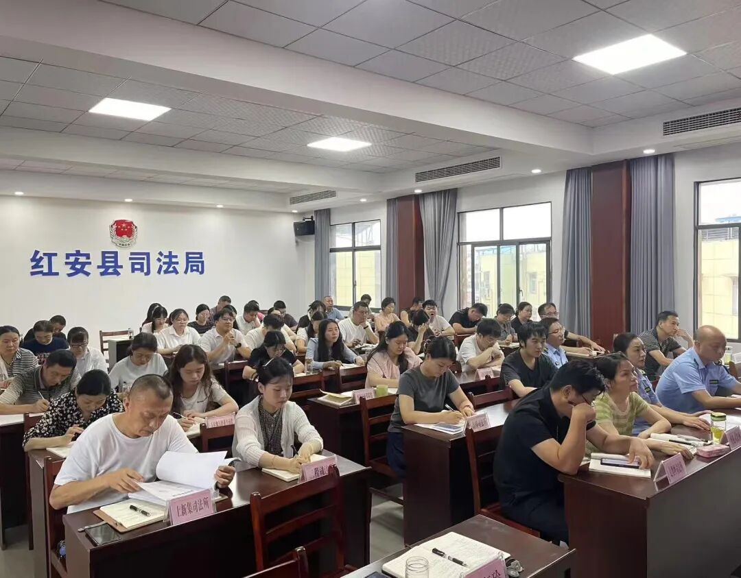 红安网消息 为提升执法规范化水平,强化社矫工作人员业务能力,解决日常监管、教育帮扶中的难点问题,促进社区矫正工作高质量发展,6月20日下午,红安县司法局举办了社区矫正工作业务培训会。县司法局各机关股室负责人、县社区矫正管理局全体工作人员、各乡镇司法所全体人员参加了培训会。