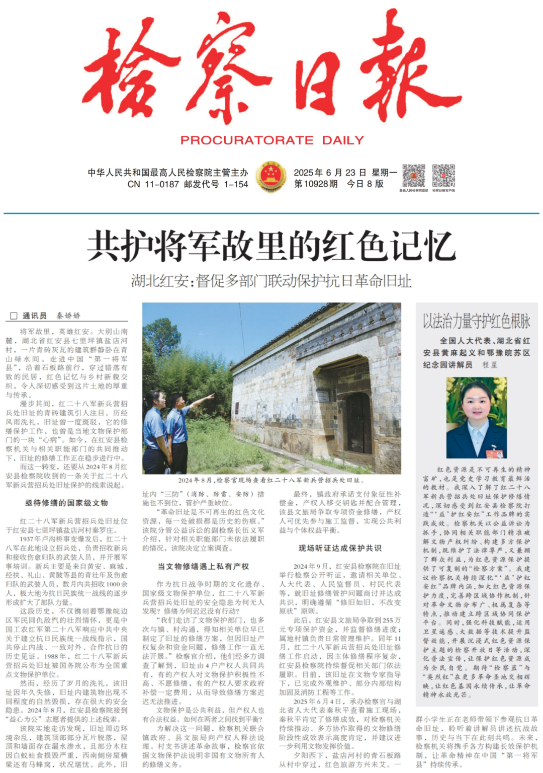 2024年9月,红安县检察院在旧址举行检察公开听证,邀请相关单位、人大代表、人民监督员、村民代表等,就旧址修缮管护问题商讨并达成共识,明确遵循“修旧如旧,不改变原状”原则。