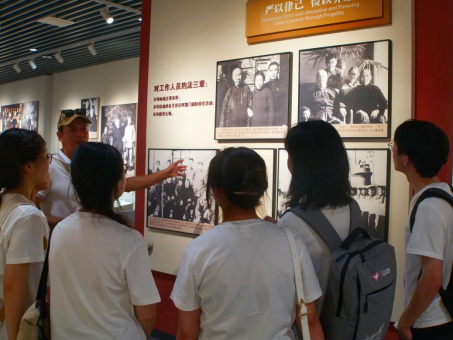 参观董必武旧居时,同学们追寻先辈足迹,被董老“尚俭戒奢、廉洁自律”的品质所感染,这与中央八项规定精神中“严格廉洁从政,反对特权思想” 的要求高度契合。旧居的 “朴诚勇毅” 箴言和董老 “新功未建惭高坐”的自勉,更让大家感受到“务实为民”的追求,与中央八项规定中“坚持务实为民”的精神内核遥相呼应。