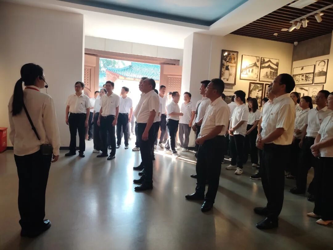 活动首站,全体党员干部怀着崇敬之情走进董必武纪念园。展柜中泛黄的毛笔记账本、带着岁月痕迹的补丁衣物、“不许亲友借势牟利”的严苛家规……讲解员娓娓道来“红色管家”董必武同志“甘守清贫为庶民”的清廉风范。党员们驻足凝视,深刻体悟老一辈革命家“严以修身、严以用权”的政治品格。