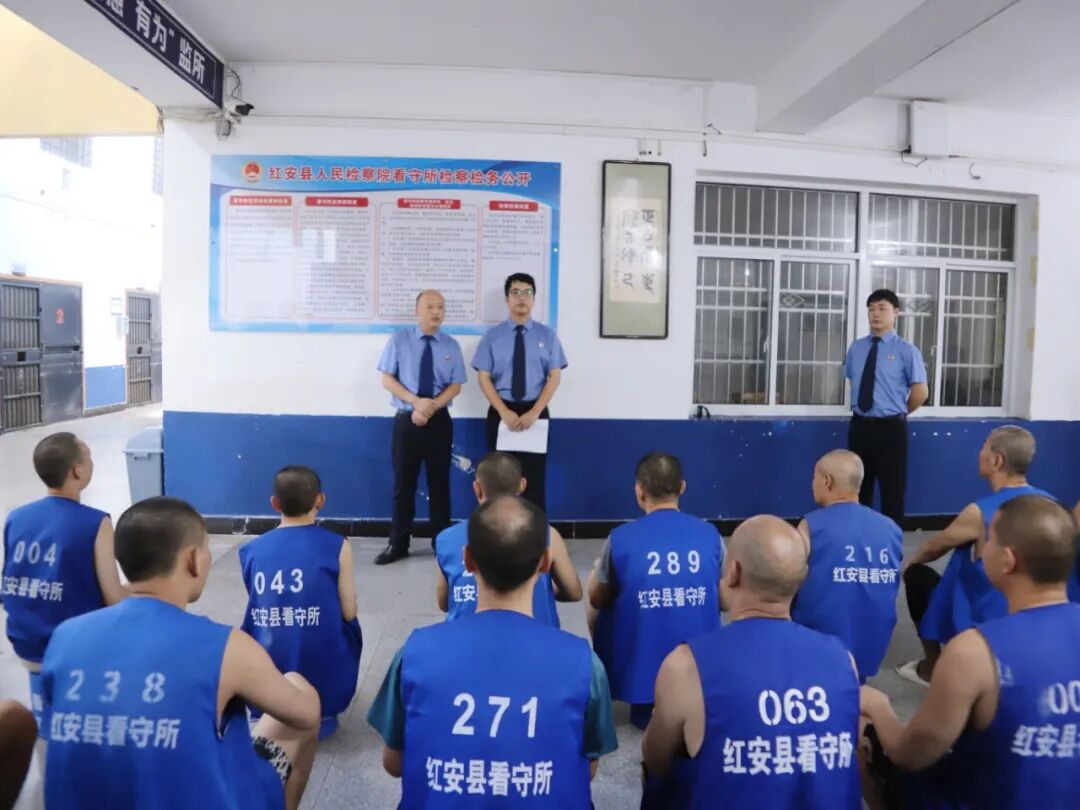 红安网消息 为提升第六届新时代检察宣传周实效,7月9日,红安县人民检察院一场专门为在押人员的普法活动在县看守所如期开展。检察官结合具体案例,重点讲解看守所期间的改造表现与最终量刑的关联性,引导在押人员真诚悔罪、积极改造。
