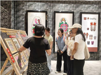 在红安绣活传习所,省级非遗项目红安绣花鞋垫代表性传承人席和玉向队员们讲述了自己与红安绣活的故事。因意外高位截瘫的她,在红安绣活中重拾生活信心,如今,她不仅技艺精湛,还积极传授技艺,让更多人了解和喜爱上这门古老技艺。她一边展示着精美的绣品,一边介绍红安绣活的针法和图案寓意,让学子们也对这门手艺有了新的理解。