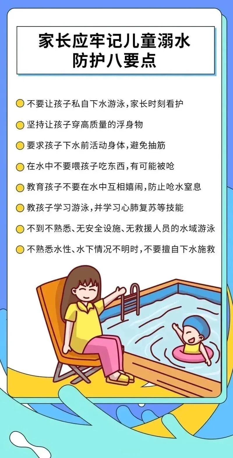 家长是孩子的第一监护人。安全无小事,孩子的安全就是父母的责任。请不厌其烦地告诫孩子:不准私自下水游玩,学会保护自己。反复叮嘱孩子,把防溺水安全知识牢记于心。