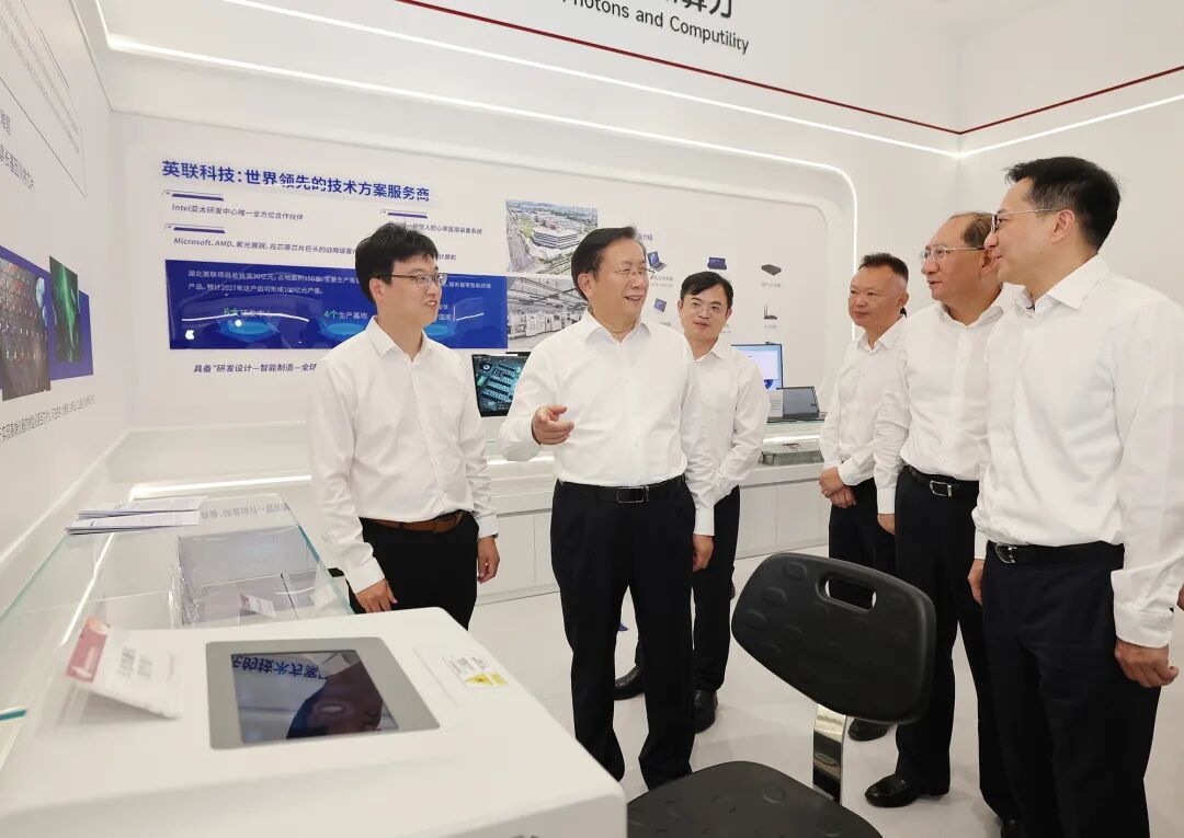 孝感国家高新区展示中心是集高新技术企业展示、科技成果和产品发布、超算中心等功能于一体的综合性服务平台。王忠林来到展示中心,听取高新区“中国知谷”建设、高新技术产业和企业发展情况介绍;走进长江3D科学计算中心,察看应用场景展示,对中心致力打造世界领先的3D科学计算和工业仿真算力平台、支撑原始科学创新和重大工程突破表示肯定,鼓励中心抢抓智算需求增长机遇,进一步丰富应用场景,推动实数深度融合,助力湖北数字经济高质量发展。
