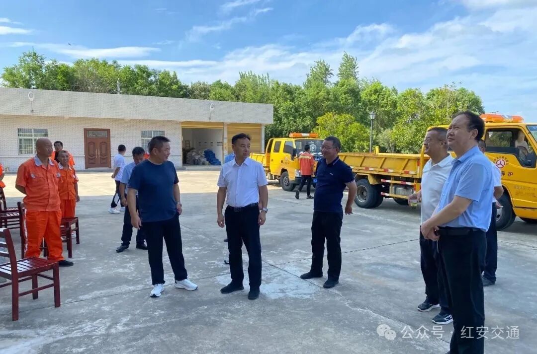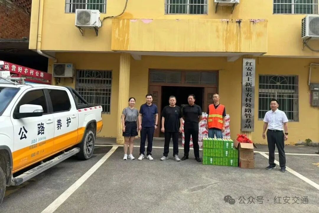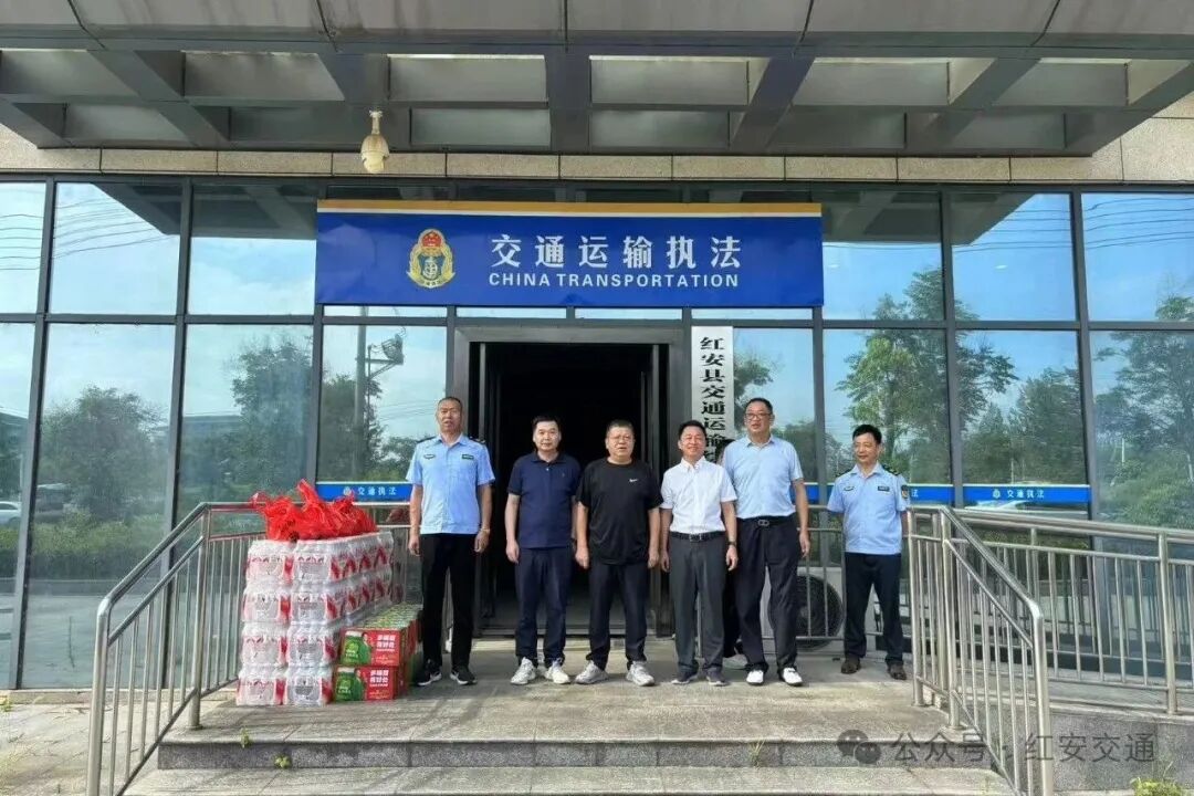 红安网消息 8月1日,正值“八一”建军节,为切实表达对一线职工的关心关爱,红安县交通运输局党组书记、局长戴运临带领局党组及班子成员,深入外业岗位、基层站所,开展2025年“送清凉”慰问活动,为奋战在高温下的交通人送去关怀与夏日的清凉。