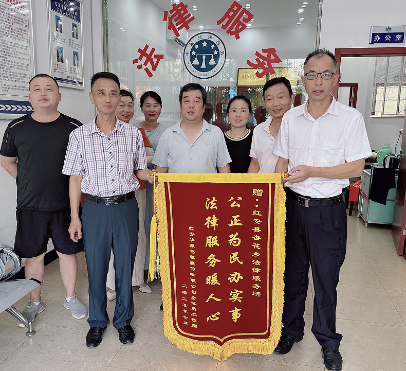 红安网消息 近日,红安县杏花乡法律服务所收获了一份暖心的荣誉。四位案件当事人代表专程送来一面“公正为民办实事,法律服务暖人心”的锦旗,以此表达对杏花法律服务所全体工作人员由衷的感激之情。这面锦旗不仅承载着当事人的信任,更彰显了基层法律服务所为民解忧的使命与担当。