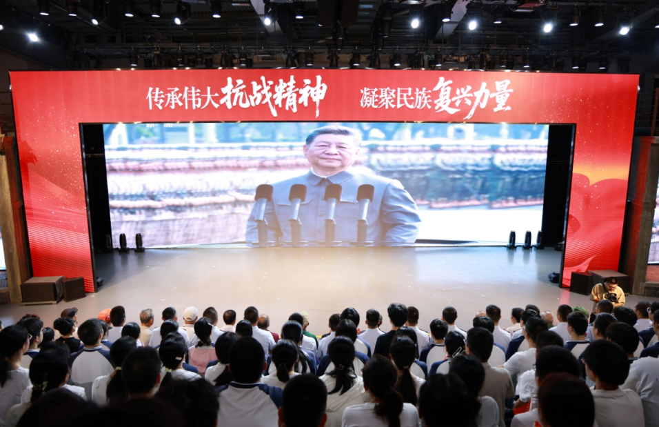 红安网消息 9月3日上午,纪念中国人民抗日战争暨世界反法西斯战争胜利80周年阅兵式在北京天安门广场隆重举行。在这庄严时刻,红安县300名社会各界代表齐聚红秀剧场,通过直播实时收听收看阅兵式盛况,为祖国繁荣富强点赞,为人民军队的威武雄壮喝彩,共同见证这场展现国家意志与和平信念的历史性盛会。