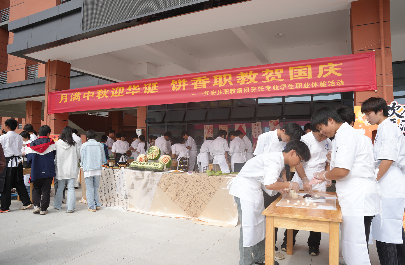中秋国庆双节将至,9月29日,红安县职教集团组织烹饪专业学生开展“月满中秋迎华诞,饼香职教迎国庆”主题活动,让学生在劳动实践中提升技能、传承文化,表达对祖国的美好祝福。