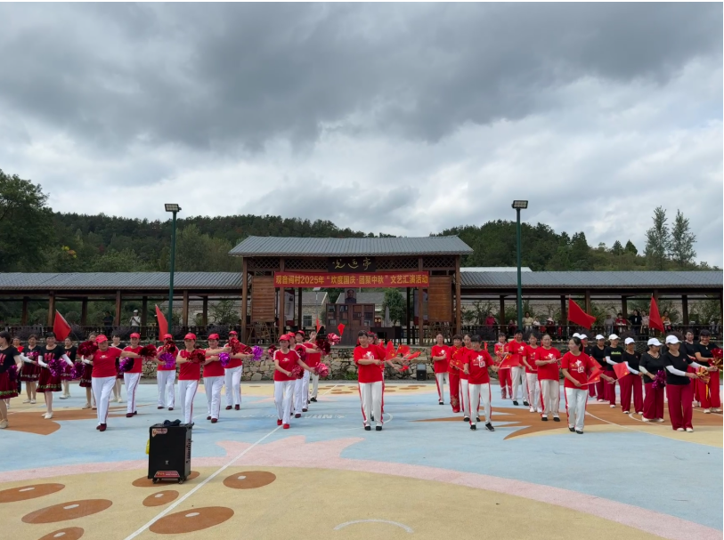 红安网消息 金秋送爽,丹桂飘香。9月28日下午,红安县七里坪镇观音阁村组织开展“欢度国庆·团聚中秋”文艺汇演,来自观音阁村各湾组的10余支舞蹈队伍集合在广场上,为村民们带来了一场精彩绝伦的文化大餐。