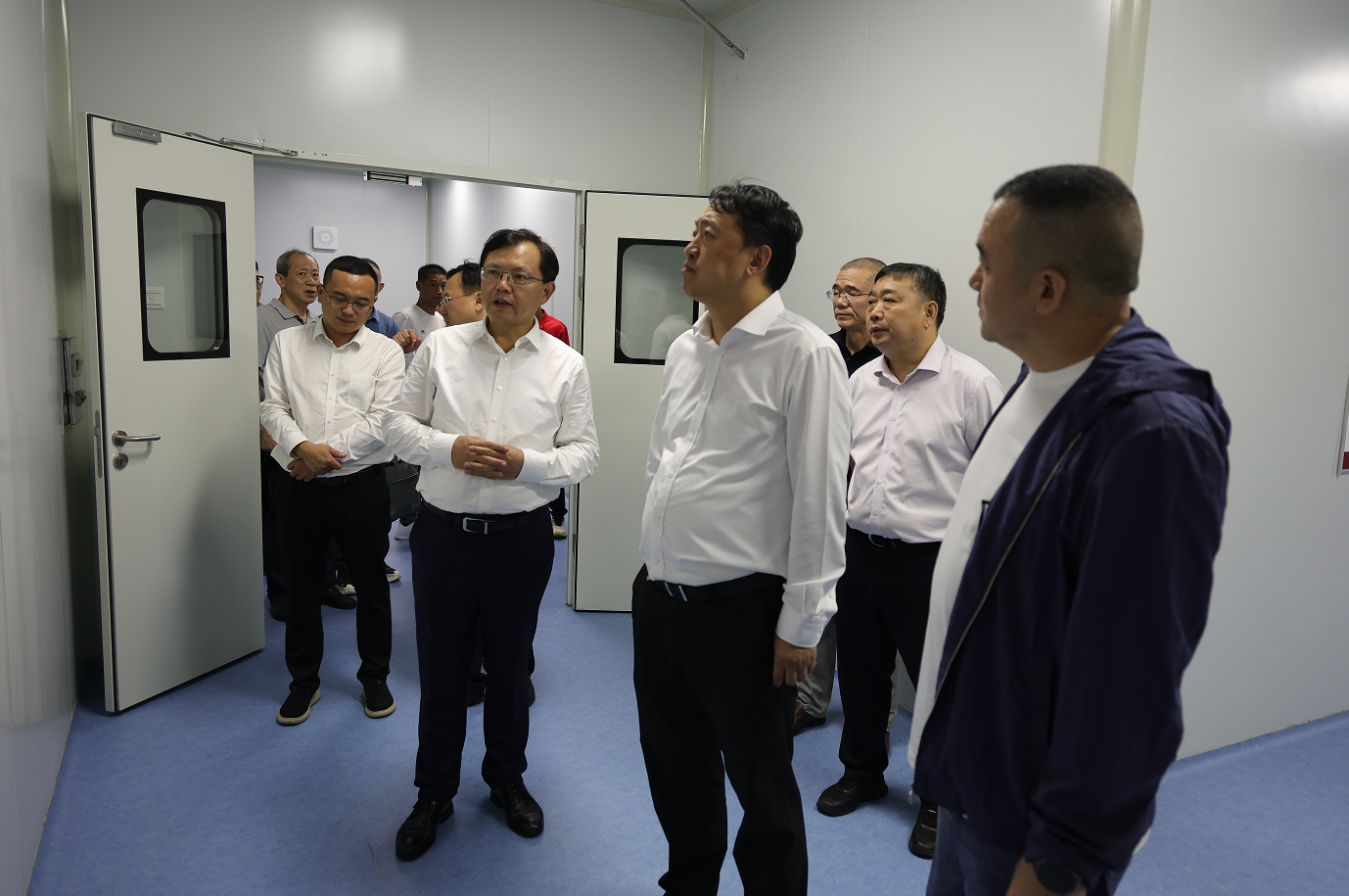 在项目现场,杨良锋一行深入实验室、在建厂房及数字集成中心,详细察看建设进度与设备配置情况,对项目当前推进成效给予肯定。他强调,要以技术创新为核心驱动力,加快禽蛋精深加工技术的研发与应用,全力打造国内顶尖的蛋品科技创新平台。要聚焦新质生产力培育,推动科技成果快速转化为现实生产力,实现科技创新与产业创新深度融合,为全省农业产业化高质量发展注入动能。要深化“以链带产”发展模式,持续整合优势资源,在延链、补链、强链上精准发力,以产业发展助力红色老区乡村振兴,为全省“建成支点、走在前列、谱写新篇”贡献农发力量。