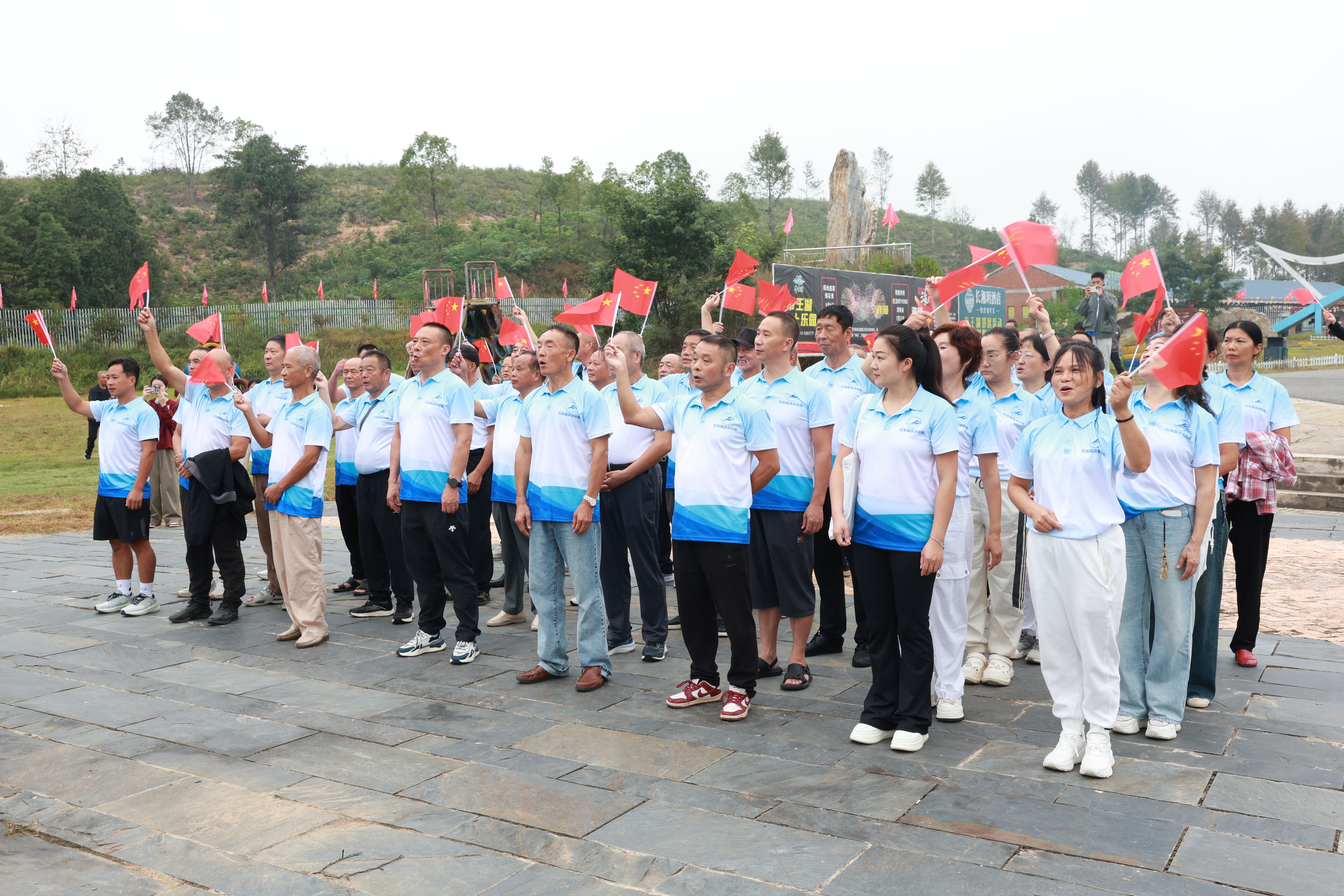 10月5日上午,由红安县体育事业发展中心、红安县游泳协会举办的首届户外畅游公开赛在帝王湖景区开赛,红安县人大常委会副主任高红英出席开幕式,来自县内外近40名游泳爱好者参加比赛。