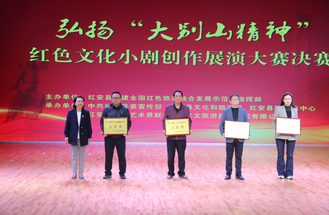 红安网消息 10月17日,“弘扬大别山精神” 红色文化小剧创作展演大赛红安县选拔赛决赛在红安融媒(传媒集团)演播大厅圆满落幕,《张南一》《当归无期》《大别山的脊梁:兰桂珍》等三部红色文化小剧荣获一等奖;《红土铸魂》《公车故事》《大别山革命母亲》等三部红色文化小剧荣获二等奖;《初心》《童子军智擒敌探》《税花》《人生的选择》等四部红色文化小剧荣获三等奖;《赤子青年汪奠川》《红医路》《不屈的旗帜》《铁血红医情》《赤心万言 自我革命的答卷》等多部红色文化小剧荣获优秀奖;红安县领导高红英、管鹏、袁珊红观看展演并为获奖单位颁奖。
