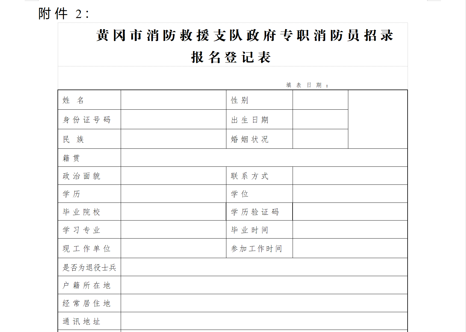 附件2 黄冈市消防救援支队政府专职消防员招录报名登记表