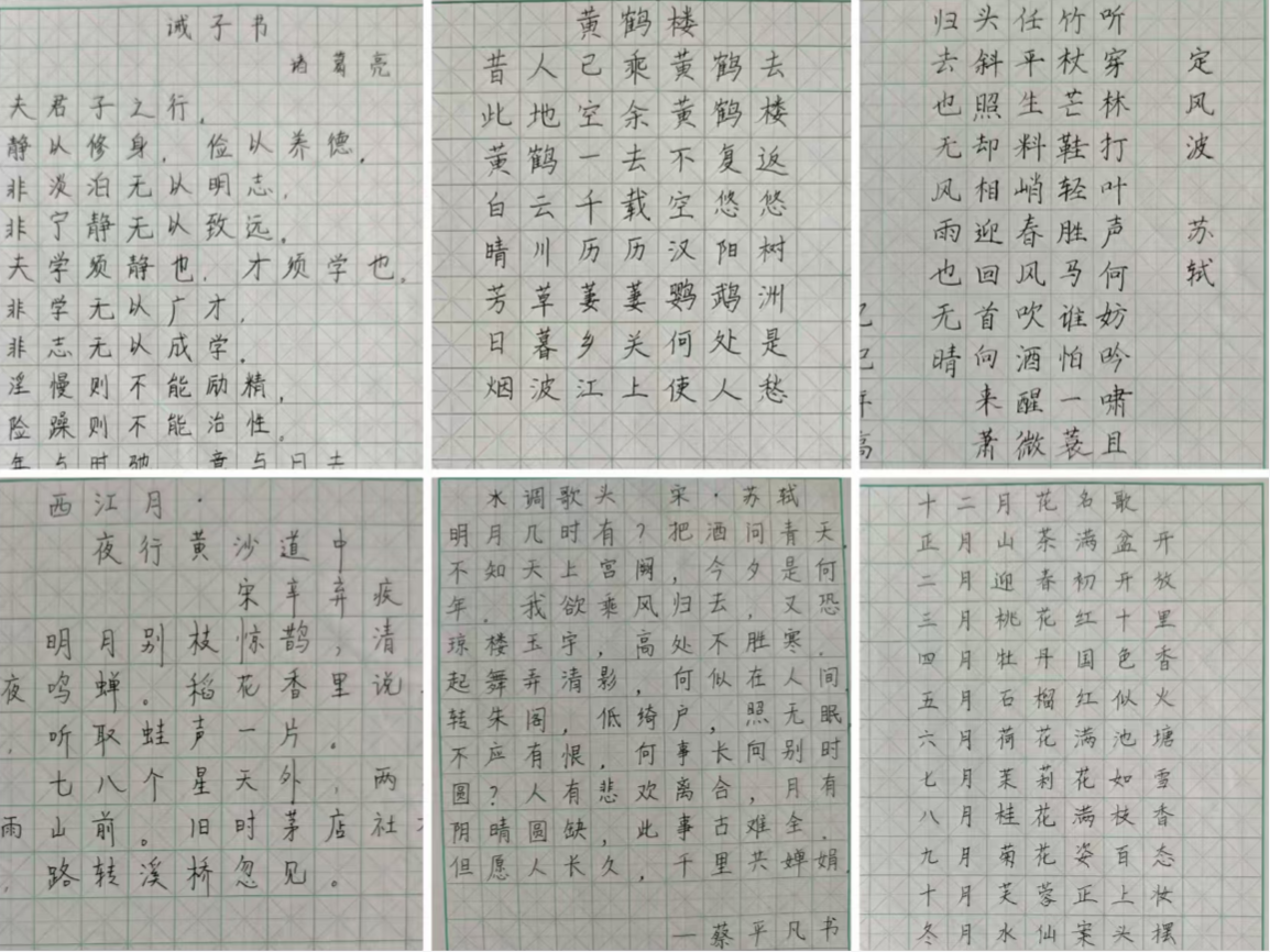 这份课堂从容,源于校区系统化的基本功训练:将硬笔字练习纳入常态——教师需按月完成指定篇目硬笔书写作业,由教研组长从字体工整度、卷面整洁度等维度点评,以练促优,夯实书写功底。