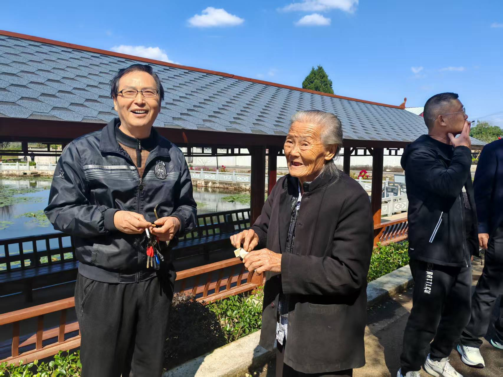 书记见我,笑容可掬:“哪里、哪里!秋雨下了这么多天,村子有些地方积水,这次要彻底根除这个顽疾!”话语间,一八十六岁的郭奶奶慈祥和善,拿着一包香烟对着村前游览的客人一个个递了上去,脸上挂满幸福。看得出来,郭奶奶感激之心情溢于言表。我顿觉这村里干部挺得人心!