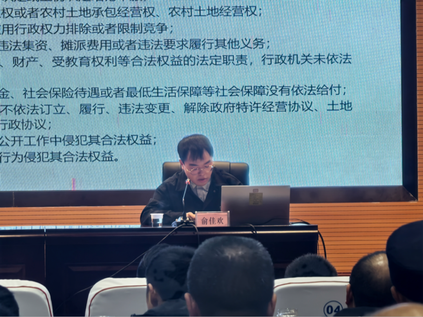 俞佳欢同志以《行政复议与应诉实践重点环节解读》为题授课