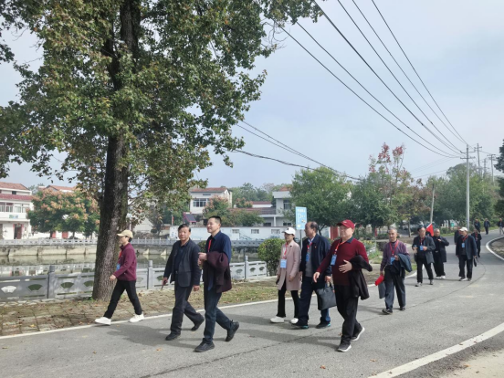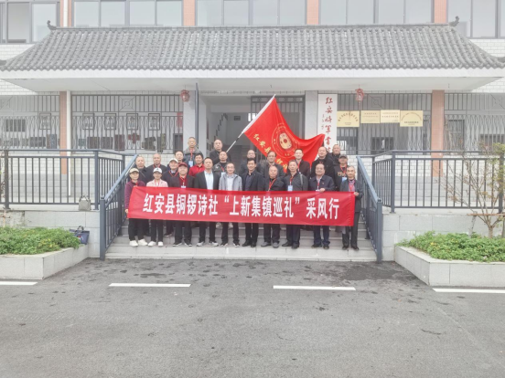 一路走来,上新集镇“乡村振兴、文旅兴盛”双兴战略成果令人瞩目。文旅融合的画卷徐徐展开,四村各具特色:余家岗的水乡田园、黄才畈的省界风情、兴安冲的古祠文化、石古岭的山水秘境,共同勾勒出乡村振兴的鲜活图景。诗社成员们一路走、一路看、一路吟、一路拍,互动畅谈间灵感迸发,结伴留影时笑意盈盈,用诗词与镜头定格美景、抒发情怀。铜锣声里,是红安人对家乡的赤诚热爱;笔墨之间,是诗人们对时代的深情礼赞。从红色遗址到绿色田园,从古老祠堂到现代村落,上新集镇用实际行动诠释着双兴战略的深刻内涵,让传统与现代共生、红色与绿色交融。